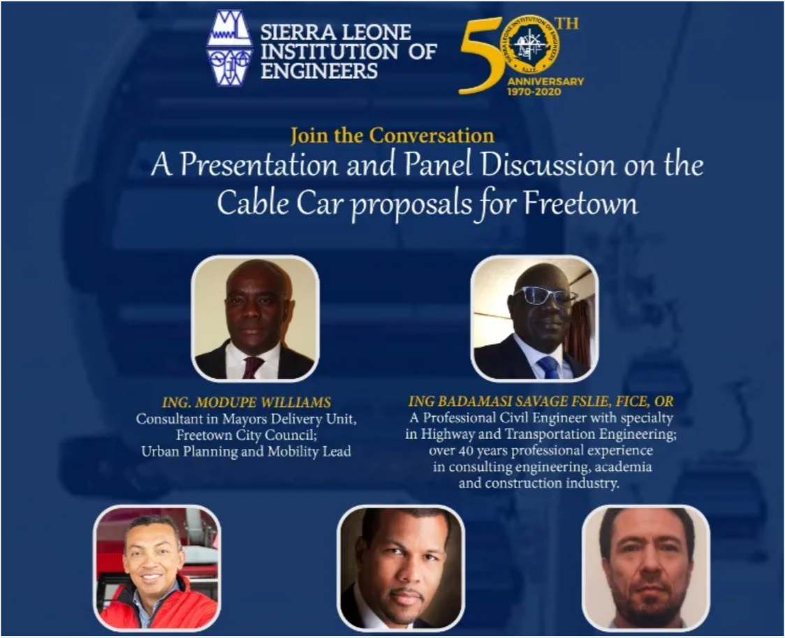 On October 2020, SLIE and Engineers for Change SL collaborated to discuss and examine the proposed Freetown Cable Car proposal. This panel discussion was hosted on the 29 October 2020 via Zoom. This webinar included some experts who had implemented cable car projects in their own communities in their countries.